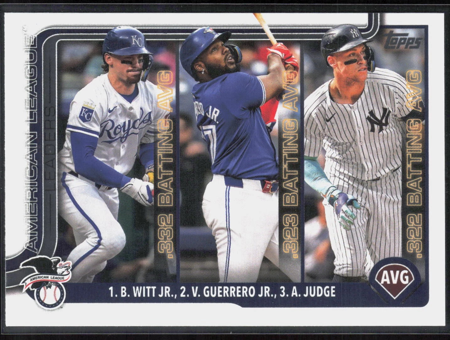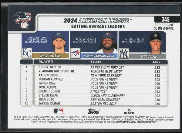 Aaron Judge, Witt and Guerrero 2025 Topps AL Batting Average Leaders Series Mint Card #345