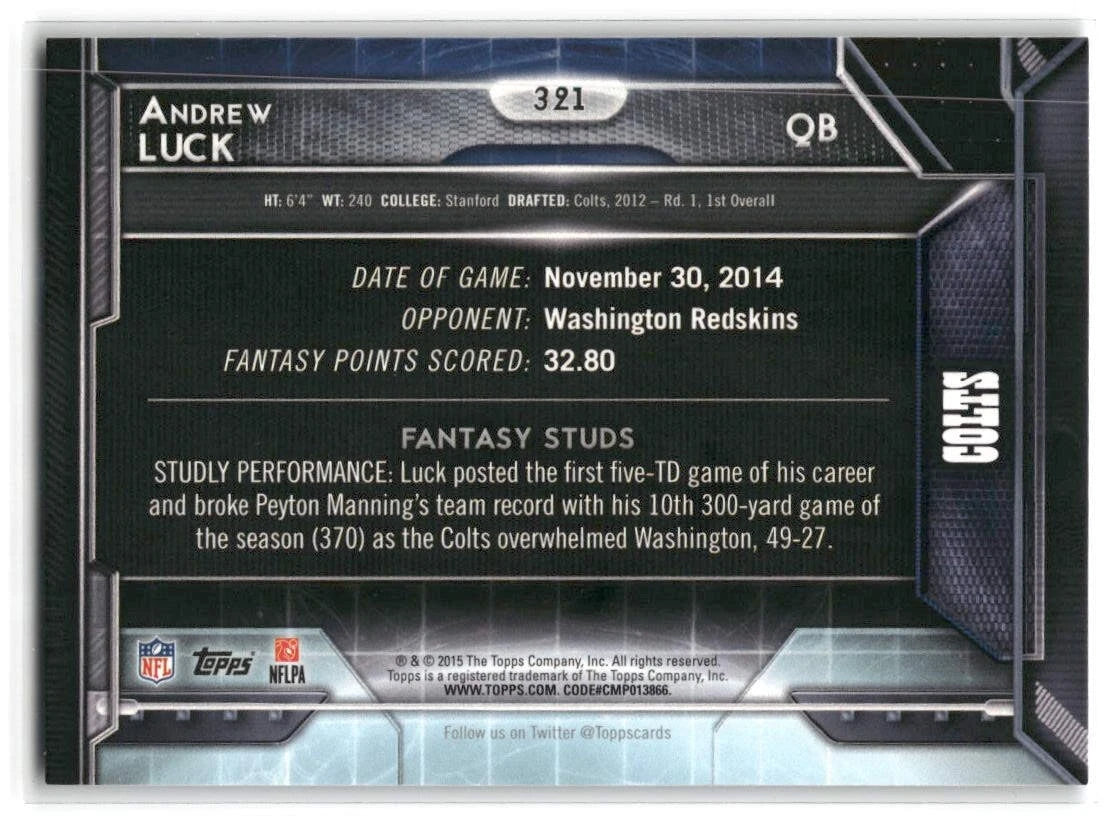 Andrew Luck 2015 Topps Fantasy Studs Series Mint Card #321