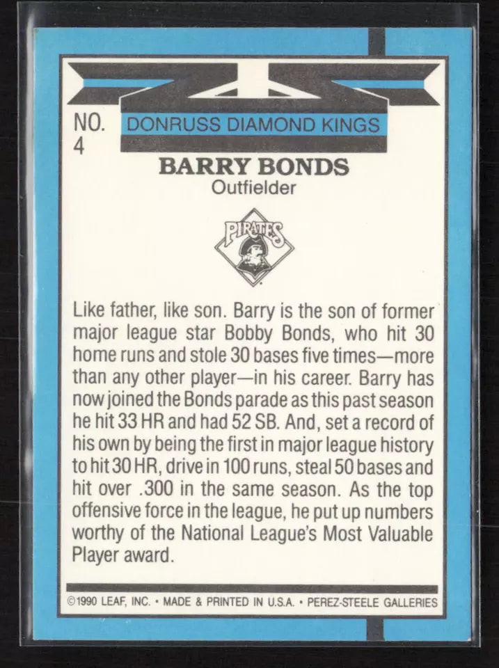 Barry Bonds 1991 Donruss Diamond Kings Series Mint Card #4