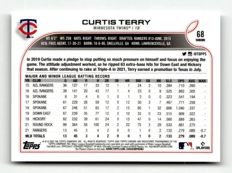 Curtis Terry 2022 Topps Chrome Sepia Refractor Series Mint Card #68
