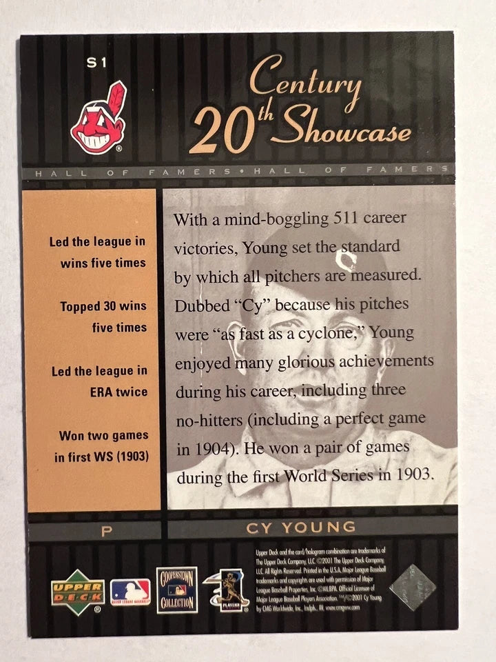 Cy Young 2001 Upper Deck Hall of Famers 20th Century Showcase Mint Card #S1