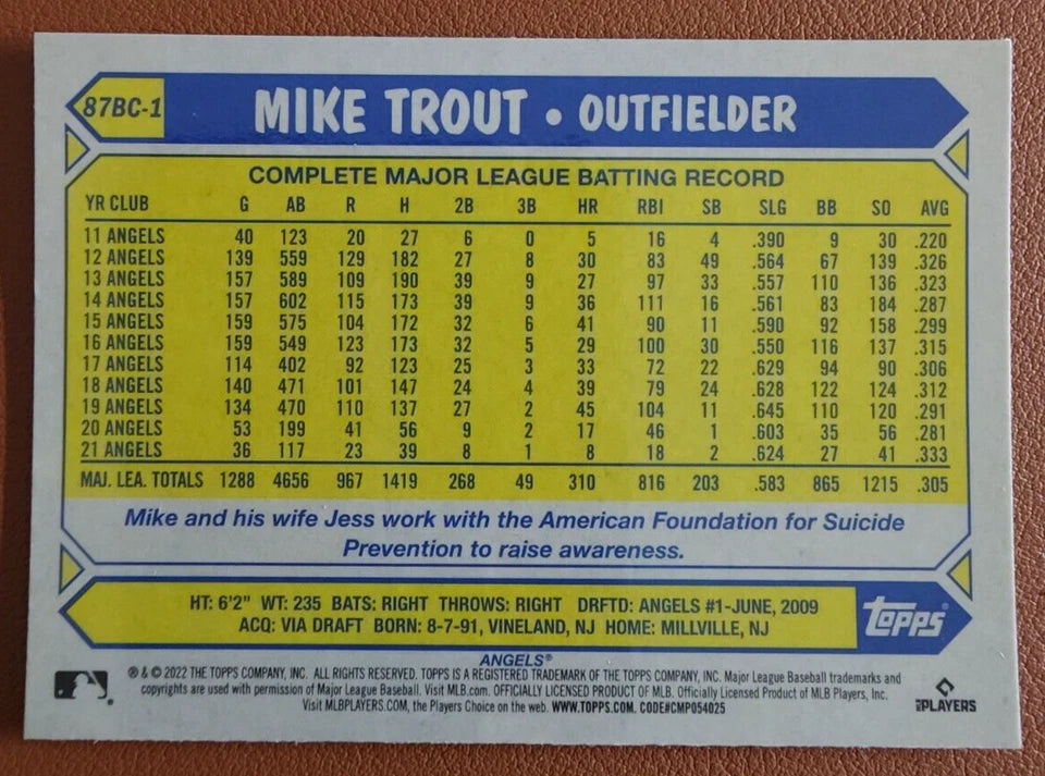 Mike Trout 2022 Topps Chrome Baseball 35th Anniversary Series Mint Card #87BC-1