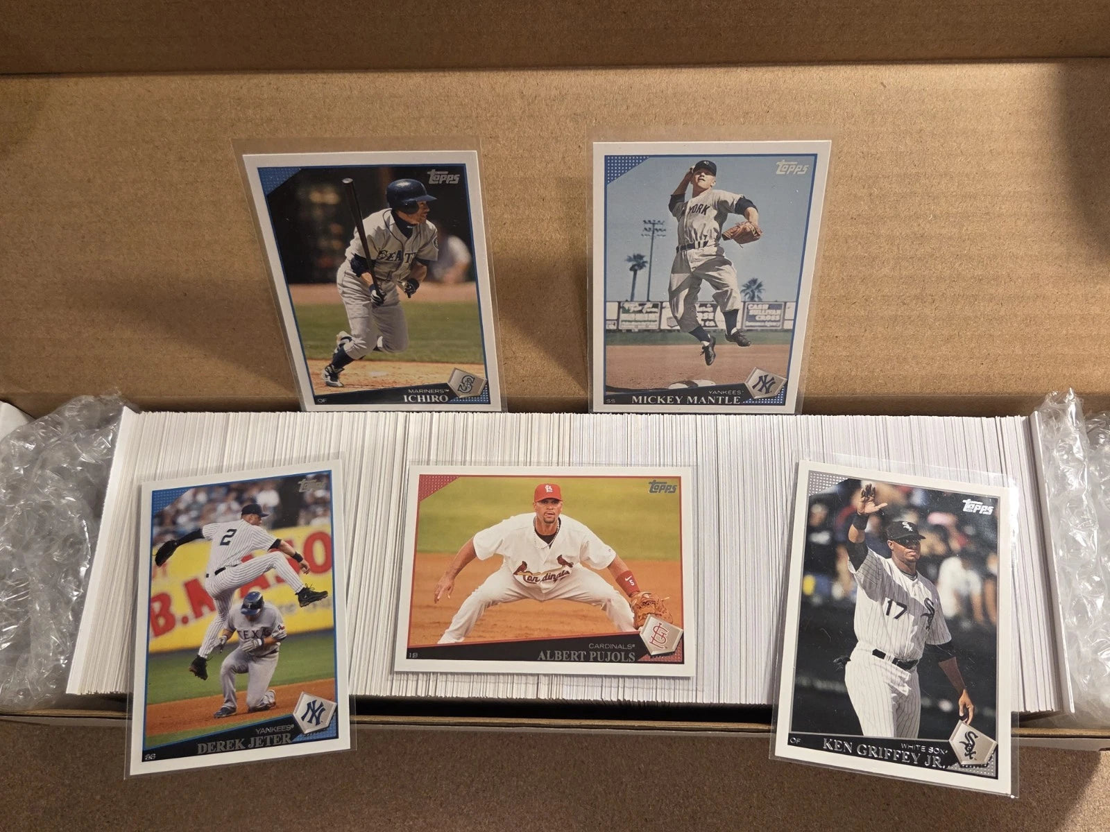 This is the 2009 Topps Baseball Series complete mint hand collated 660 card series #1 and #2 set! Loaded with your favorite stars including Mickey Mantle, Evan Longoria, Alex Rodriguez, Ken Griffey Jr., Frank Thomas, David Ortiz, David Wright, Albert Pujols, Randy Johnson, Daisuke Matsuzaka, Ichiro Suzuki, Manny Ramirez, Greg Maddux and many others! Lots of rookie cards including future star David Price, Aaron Cunningham, Frddy Sandoval, Matt Tuiasosopo and others!