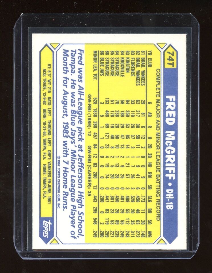 Fred McGriff 1987 Topps Traded Tiffany Series Mint Card #74T