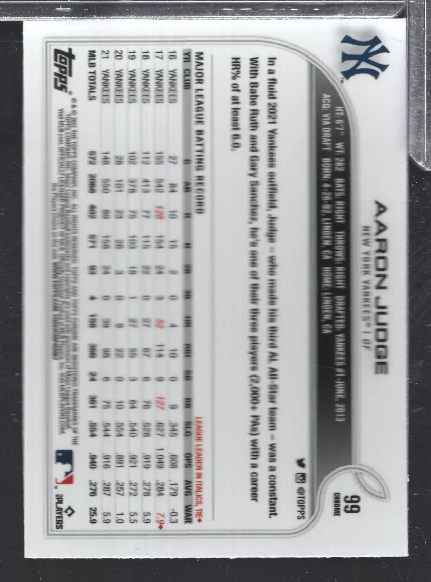 Aaron Judge 2022 Topps CHROME Mint Card #99