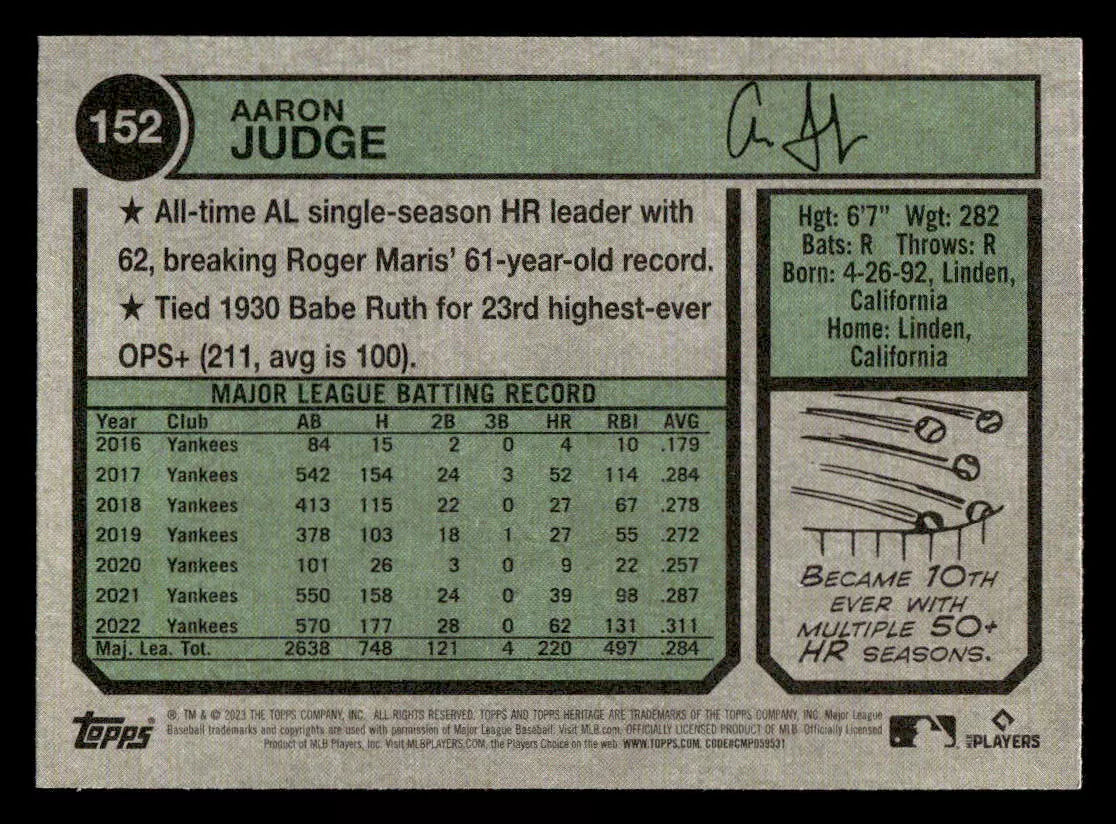 Aaron Judge 2023 Topps Heritage Series Mint Card #152