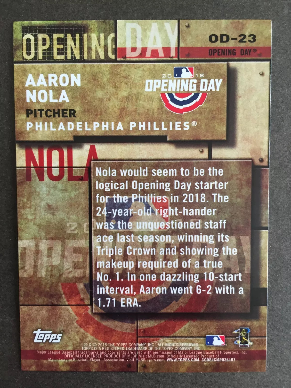 Aaron Nola 2018 Topps Opening Day Series Mint Card #OD-23