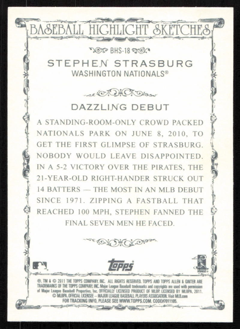 Stephen Strasburg 2011 Topps Allen & Ginter Highlight Sketches Series Mint Card BHS-18