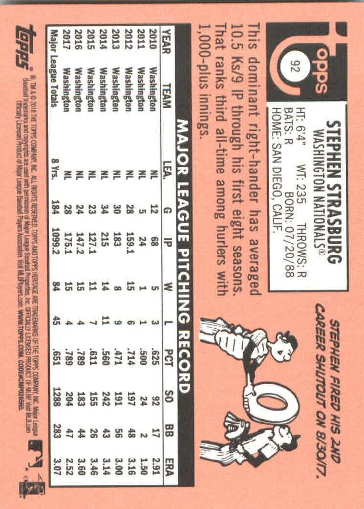 Stephen Strasburg 2018 Topps Heritage Series Mint Card #92