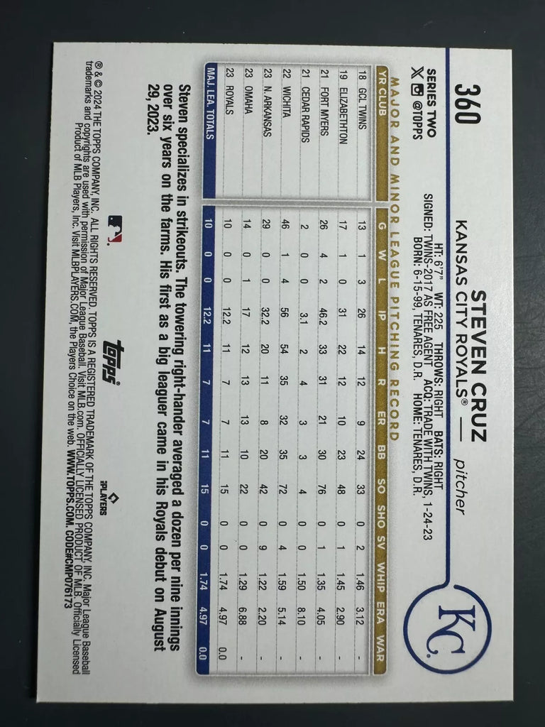 Steven Cruz 2024 Topps Rainbow Foil Series Mint Card #360