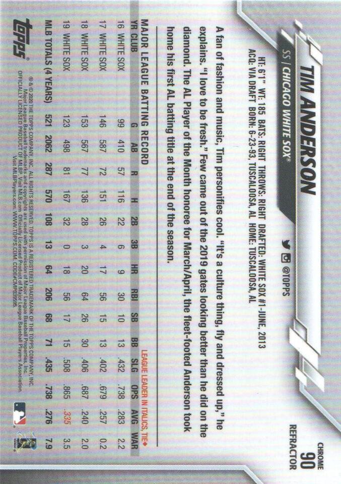 Tim Anderson 2020 Topps Chrome Sepia Refractor Series Mint Card #90