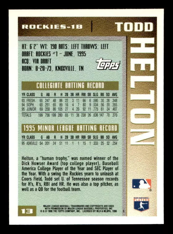 Todd Helton 1996 Topps Series Mint Rookie Card #13