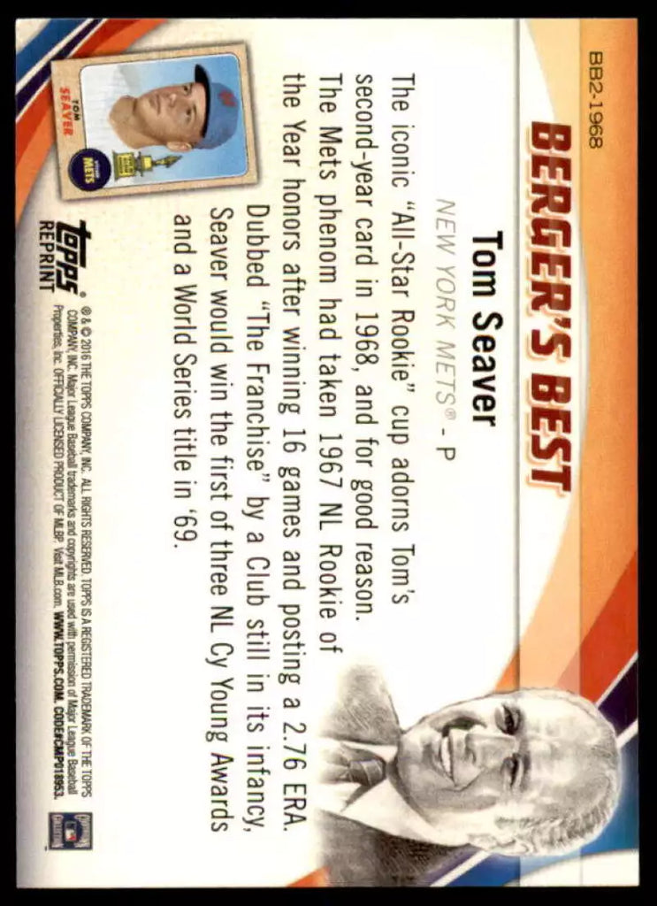 Tom Seaver 2016 Topps Berger's Best Series Mint Card #BB2-1968