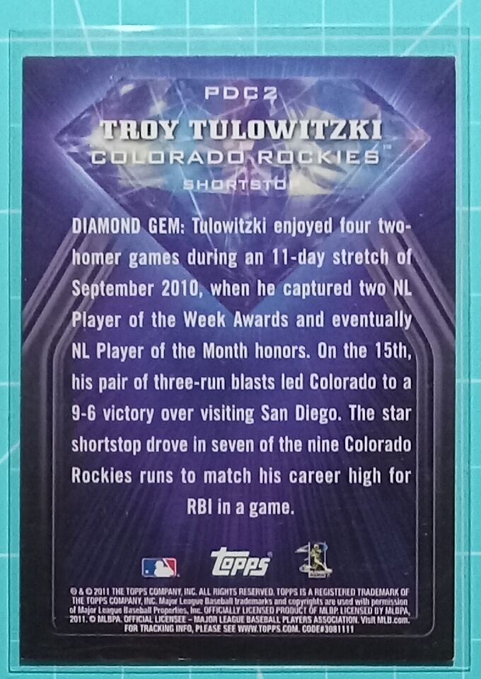 Troy Tulowitzki 2011 Topps Toys R Us Purple Diamond Cuts Series Mint Card #PDC2