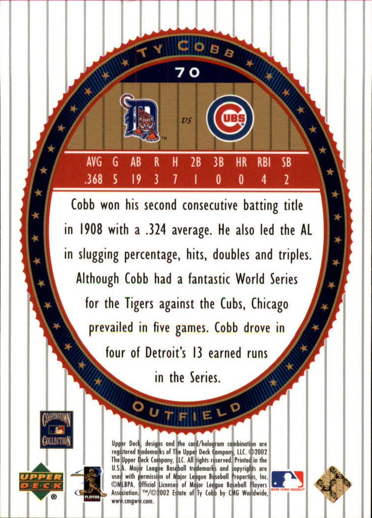 Ty Cobb 2002 Upper Deck World Series Heroes Series Mint Card #70