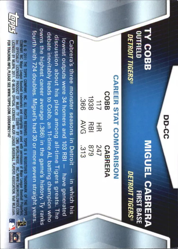 Ty Cobb and Miguel Cabrera 2011 Topps Diamond Duos Series Mint Card #DD-CC