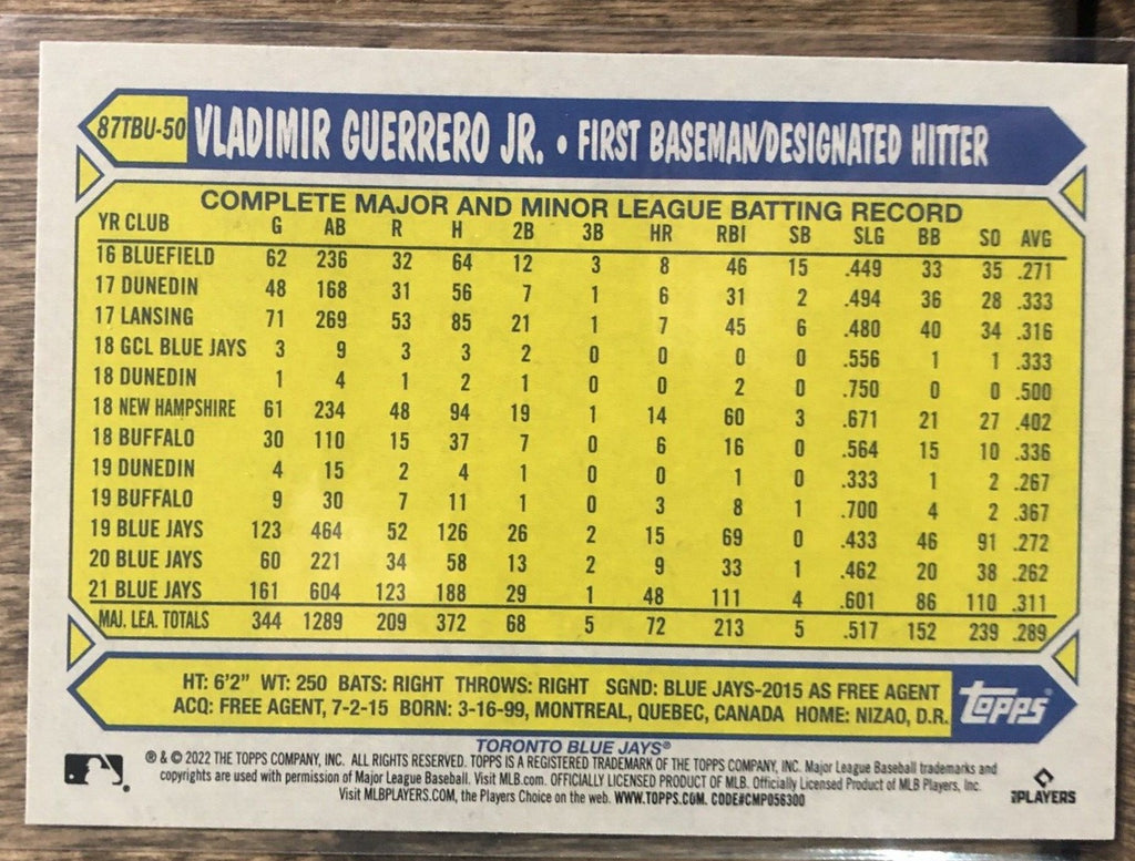 Vladimir Guerrero Jr. 2022 Topps Update 1987 Topps Insert Series Mint Card #87TBU-50