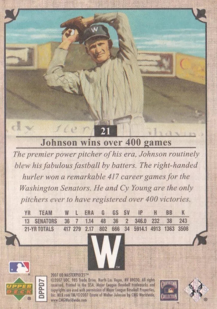 Walter Johnson 2007 UD Masterpieces Series Mint Card #21