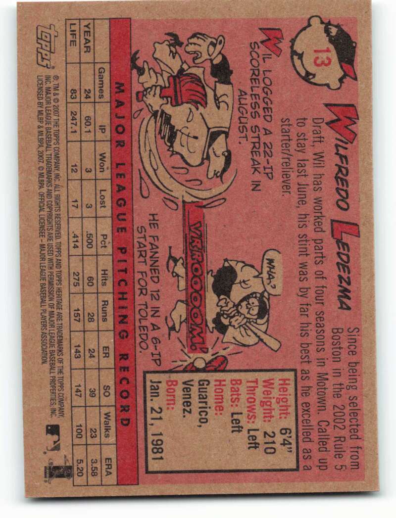 Wilfredo Ledezma 2007 Topps Heritage Tigers Team Name Yellow Series Mint Card #13