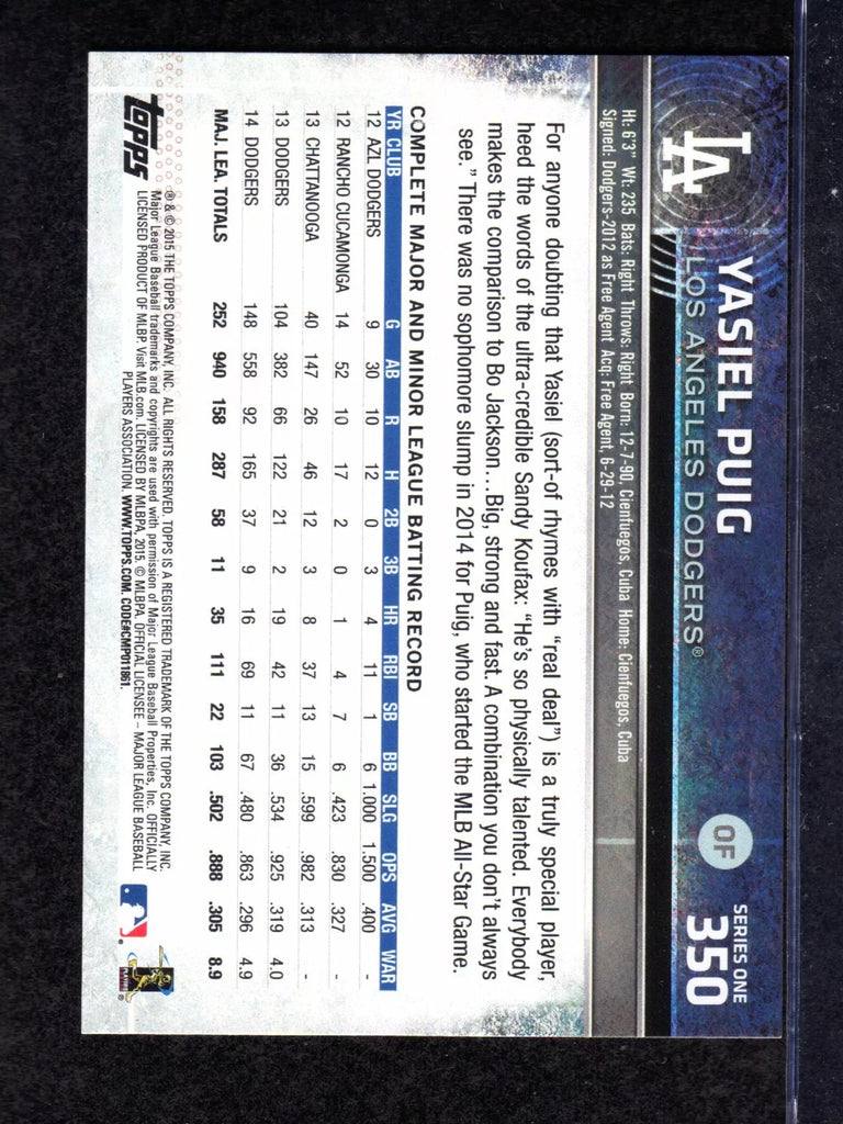 Yasiel Puig 2015 Topps Series Mint Card #350