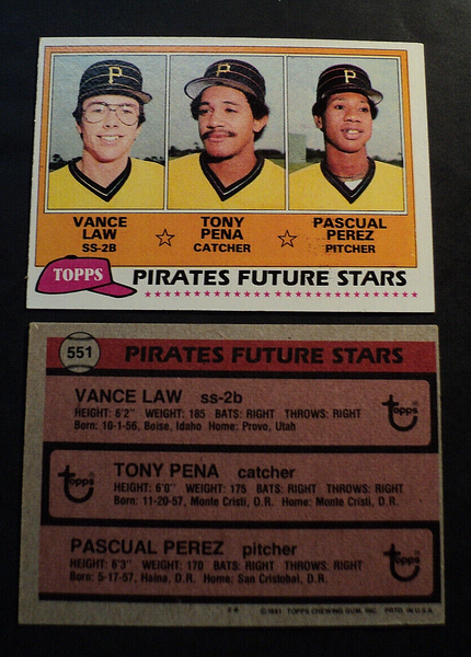 Vance Law, Tony Pena and Pascual Perez 1981 Topps Future Stars Series Mint Card #551 $2.99