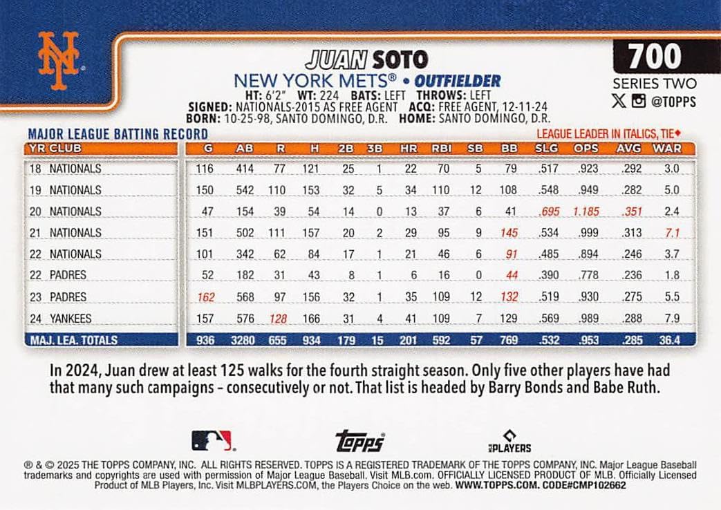 Please Note: As described, this is the brand new, HAND COLLATED Regular Issue team set, it is not to be confused with the 2025 Topps factory sealed 17 card team set you will find listed and described as a FACTORY Sealed set. Topps makes only one factory version each year, please don't hesitate to contact us with any questions.