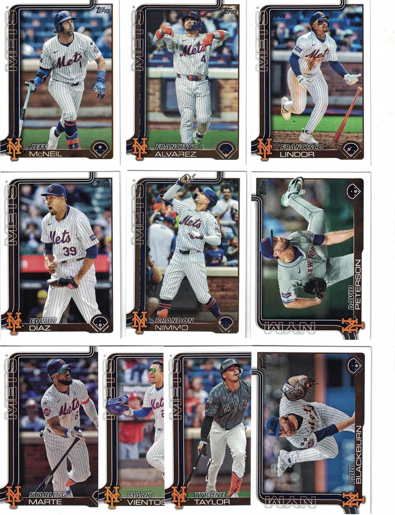 New York Mets 2025 Topps Complete Mint 24 Card Hand Collated Team Set Featuring Francisco Lindor, Juan Soto, Edwin Díaz and Pete Alonso with Luisangel Acuña Rookie Card Plus