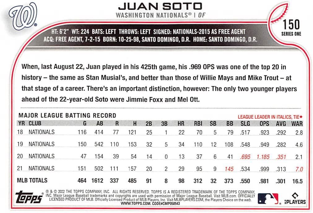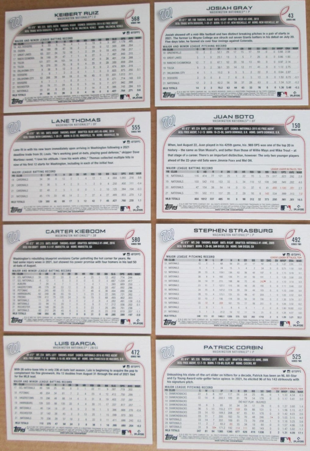 Washington Nationals 2022 Topps Hand Collated 19 Card Team Set Featuring Juan Soto, Stephen Strasburg, Gerardo Parra, Keibert Ruiz Future Stars and 5 Rookie Cards Plus