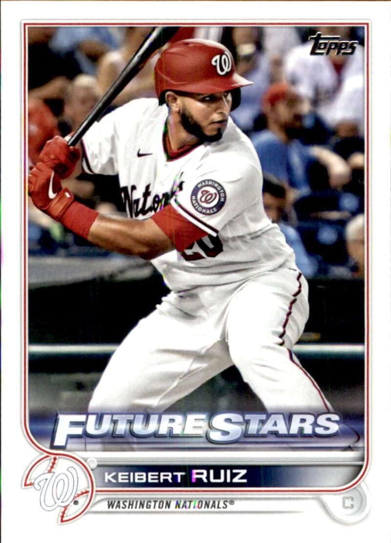 This is a 2022 Topps Washington Nationals complete mint hand collated 19 card team set; it was never issued in factory form. Players included are Juan Soto, Carter Kieboom, Andrew Young, 2 Gerardo Parra cards (#220 and #583), Lane Thomas, Stephen Strasburg, Patrick Corbin, Luis Garcia, Josh Bell, Keibert Ruiz Future Stars, Ryan Zimmerman, Alcides Escobar, a Washington Nationals Team card and Rookie Cards of Riley Adams, Mason Thompson, Jakson Reetz, Josiah Gray and Joan Adon.