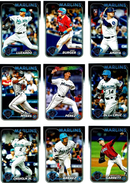 Miami Marlins 2024 Topps Complete Mint Hand Collated 19 Card Team Set with Rookie Cards of Dane Myers and Jacob Amaya Plus $3.99