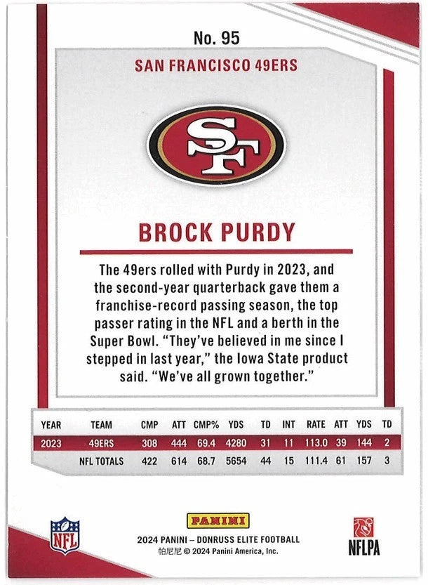Brock Purdy 2024 Panini Donruss Elite Series Mint Card #95