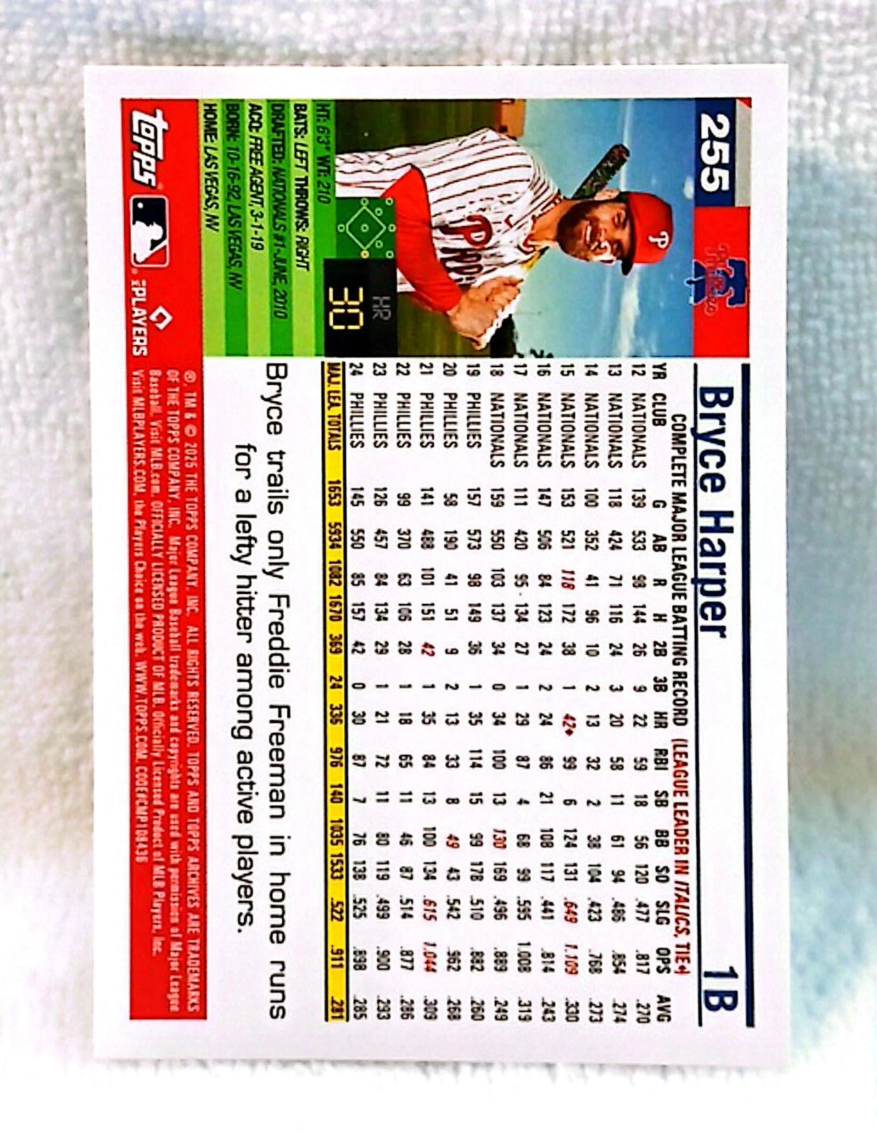 Bryce Harper 2025 Topps Archives Series Mint Card #255