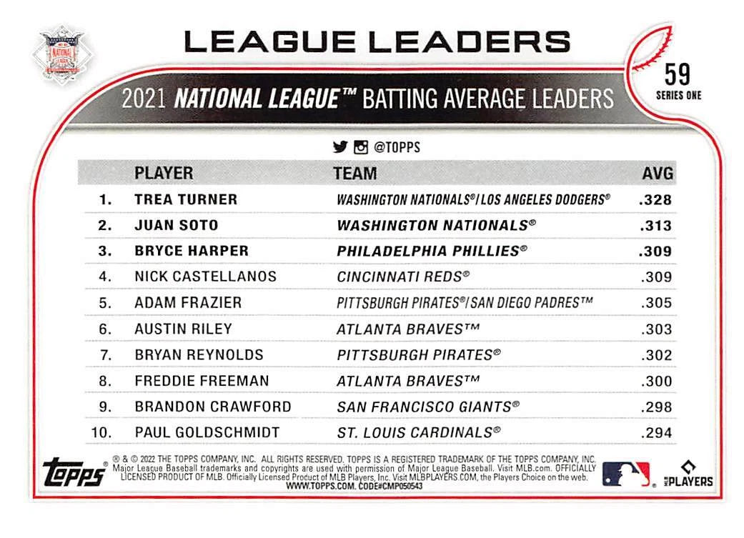 Bryce Harper Soto and Turner 2022 Topps Batting Average Leaders Series Mint Card #59