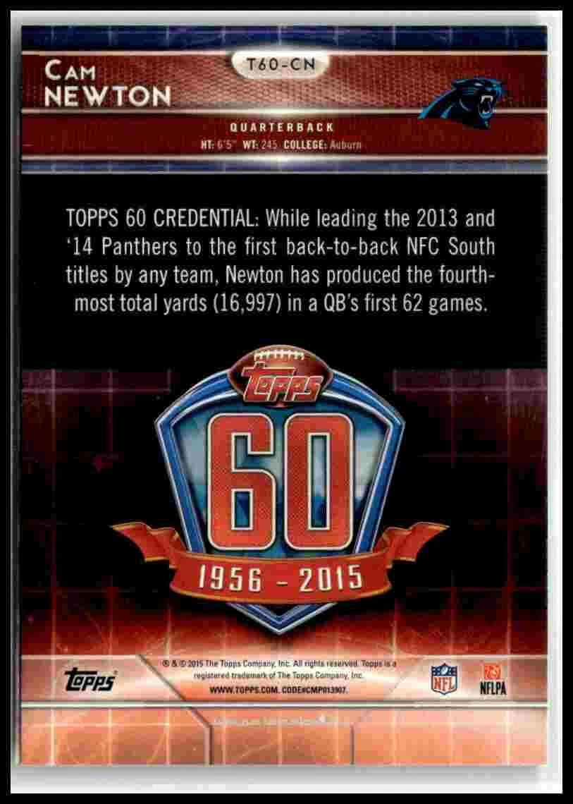 Cam Newton 2015 Topps 60th Anniversary Mint Card #T60-CN