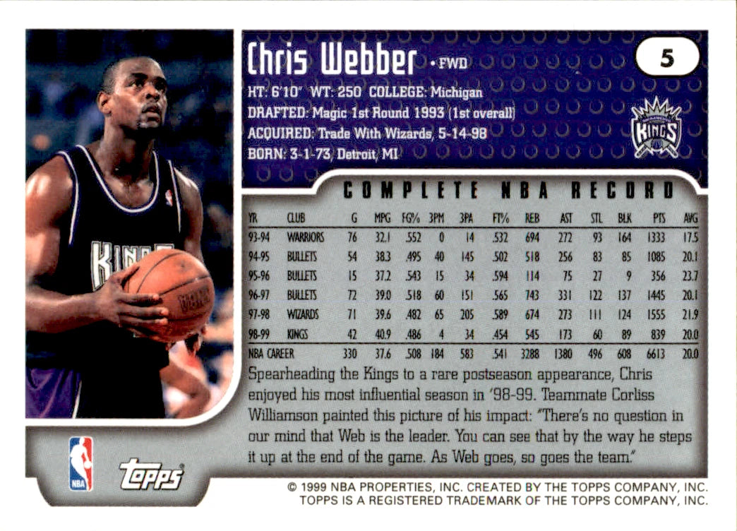 Chris Webber 2000 2001 Fleer Futures Series Mint Card #195