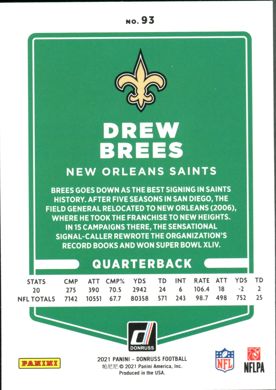 Drew Brees 2021 Panini Donruss Series Mint Card #93