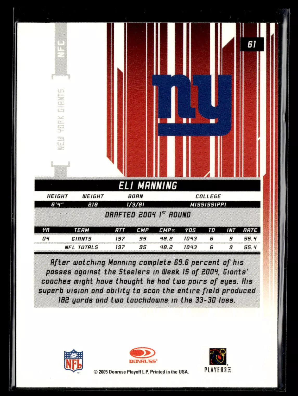 Eli Manning 2005 Leaf Rookie and Stars Series Mint Card #61