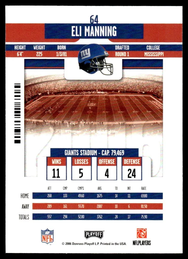 Eli Manning 2006 Playoff Contenders Series Mint Card #64
