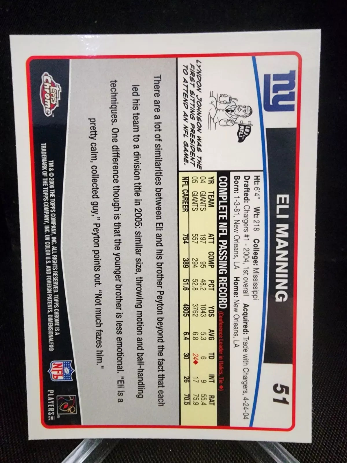 Eli Manning 2006 Topps Chrome Series Mint Card #51