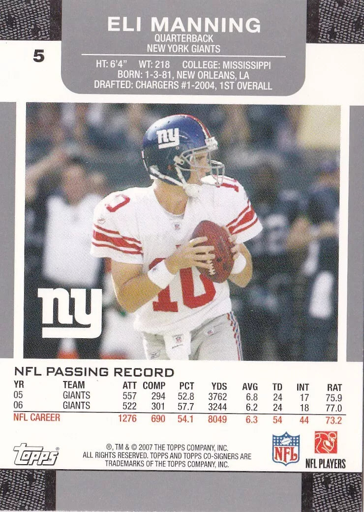 Eli Manning 2007 Topps Co-Signers Series Mint Card #5