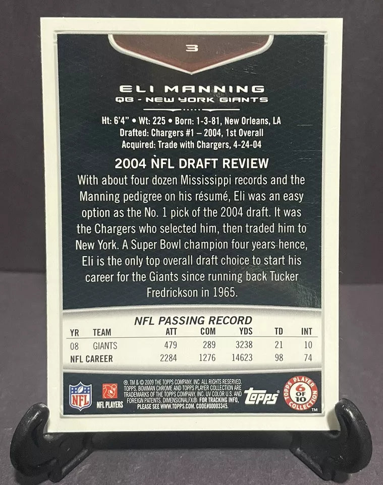 Eli Manning 2009 Bowman Chrome Series Mint Card #3