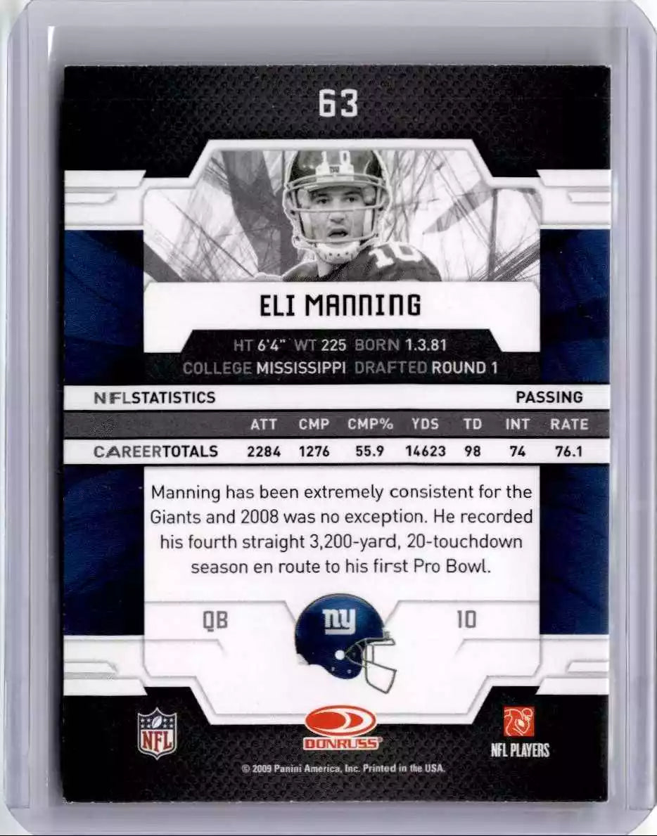 Eli Manning 2009 Donruss Elite Series Mint Card #63