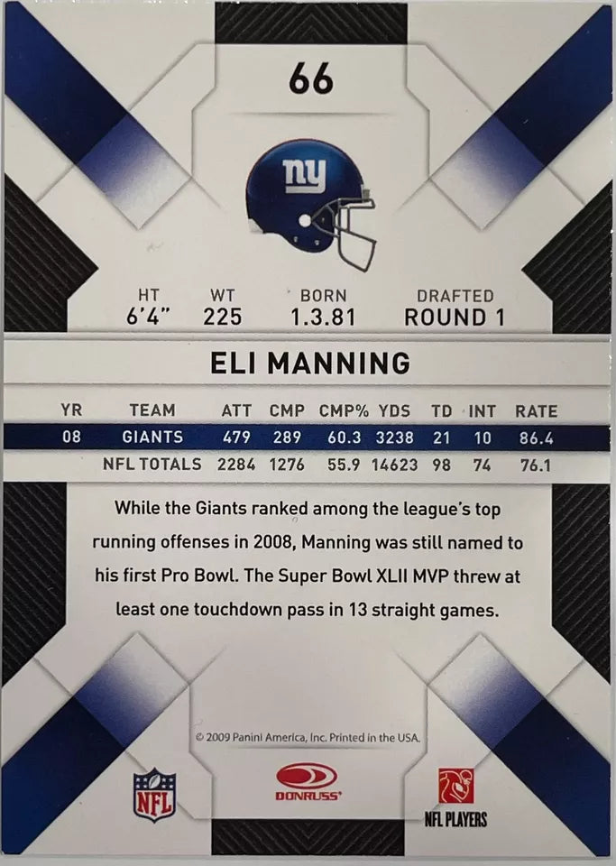 Eli Manning 2009 Donruss Threads Series Mint Card #66
