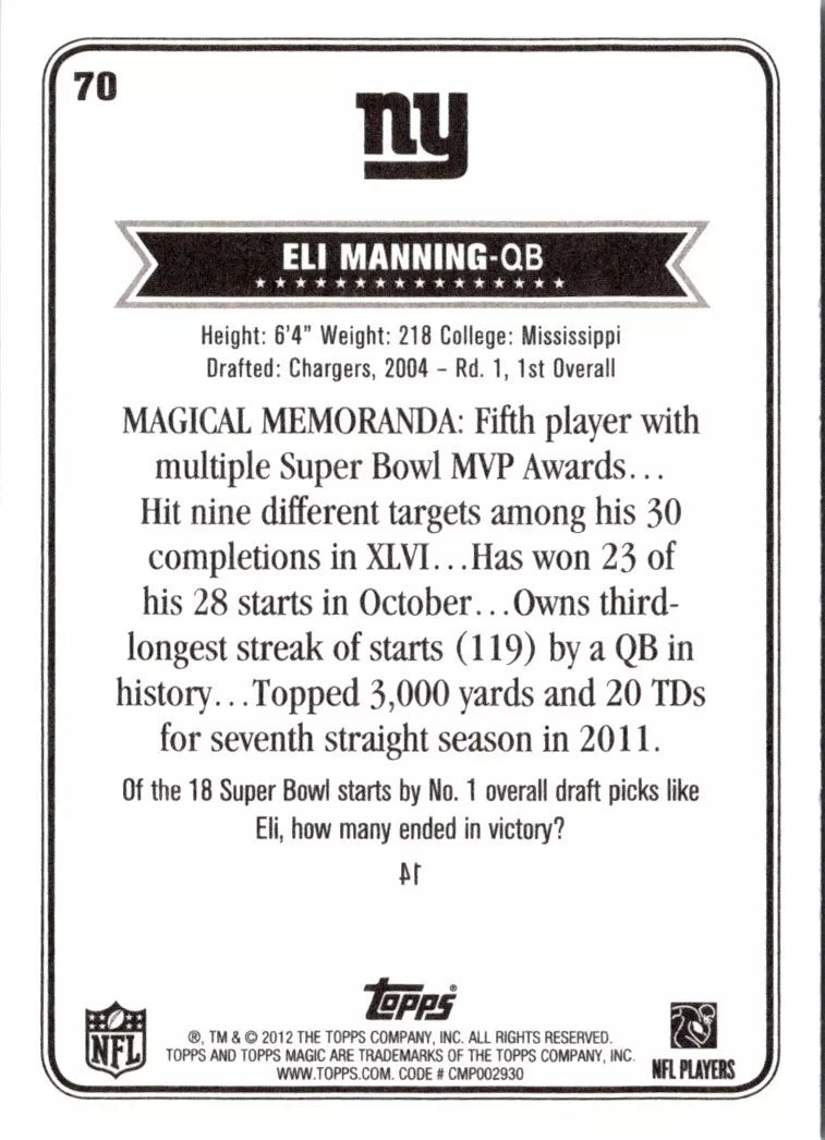 Eli Manning 2012 Topps Magic Series Mint Card #70