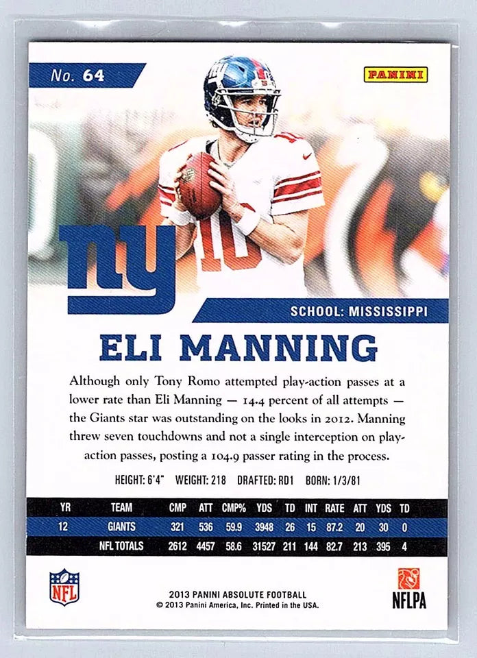 Eli Manning 2013 Absolute Series Mint Card #64