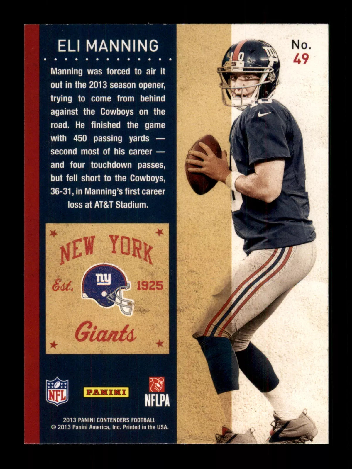 Eli Manning 2013 Playoff Contenders Series Mint Card #49