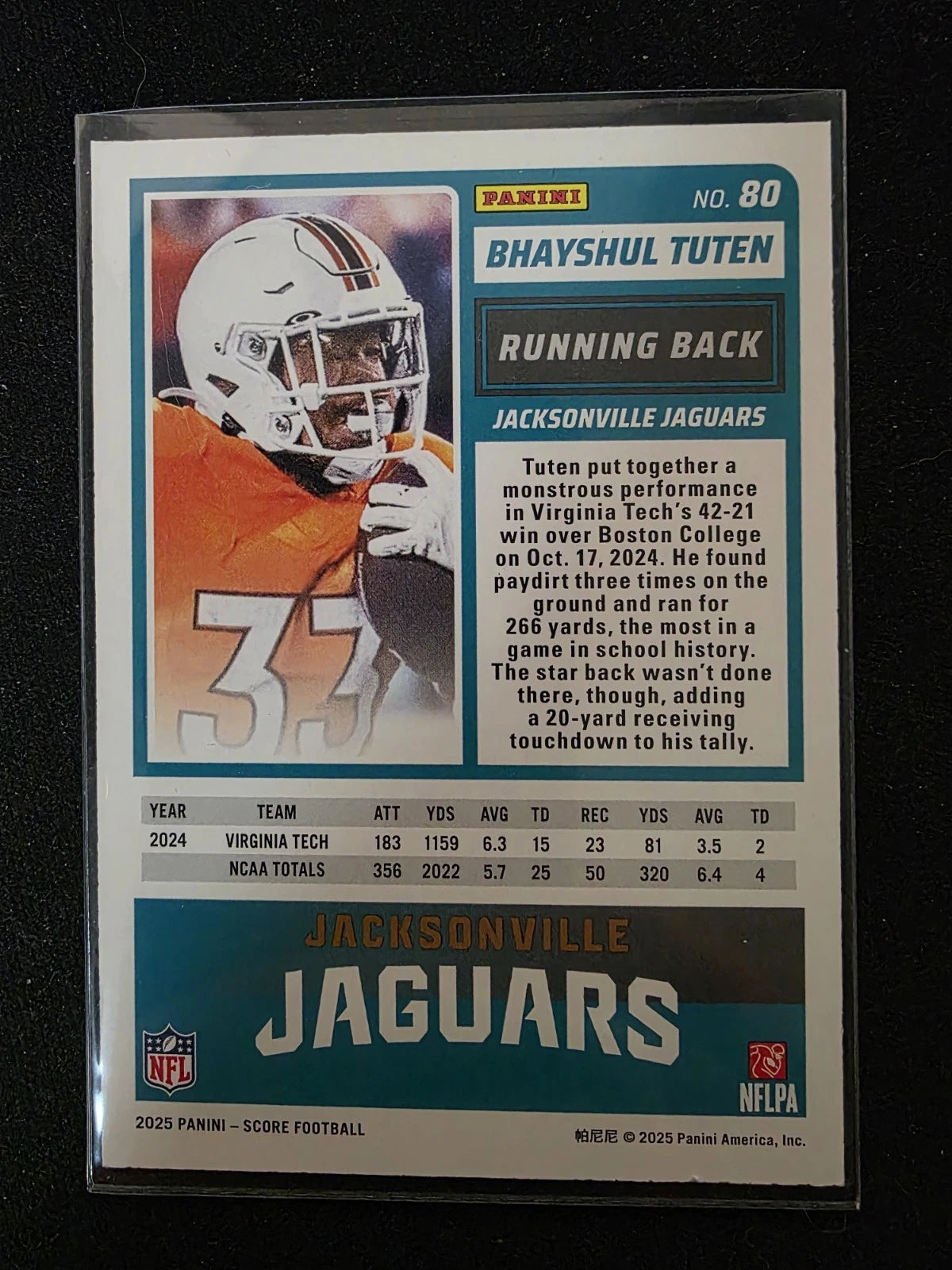 Bhayshul Tuten 2025 Score Lava Mint Rookie Card #80 Serial #89/799