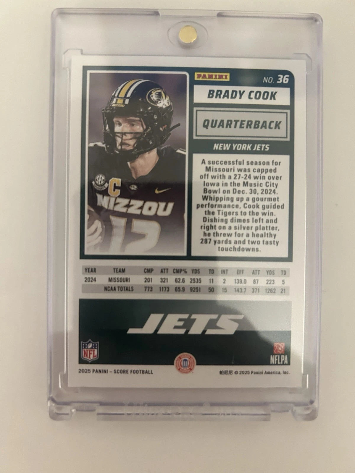 Brady Cook 2025 Score Blue Stars Mint Rookie Card #36  Serial #6/499