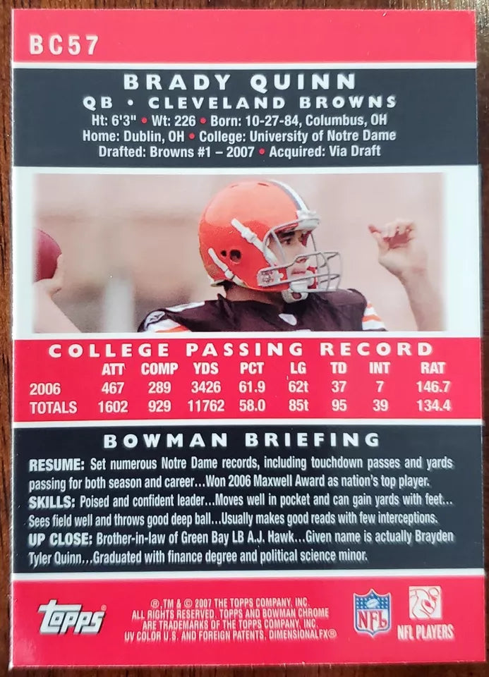 Brady Quinn 2007 Bowman Chrome Series Mint Rookie Card #BC57