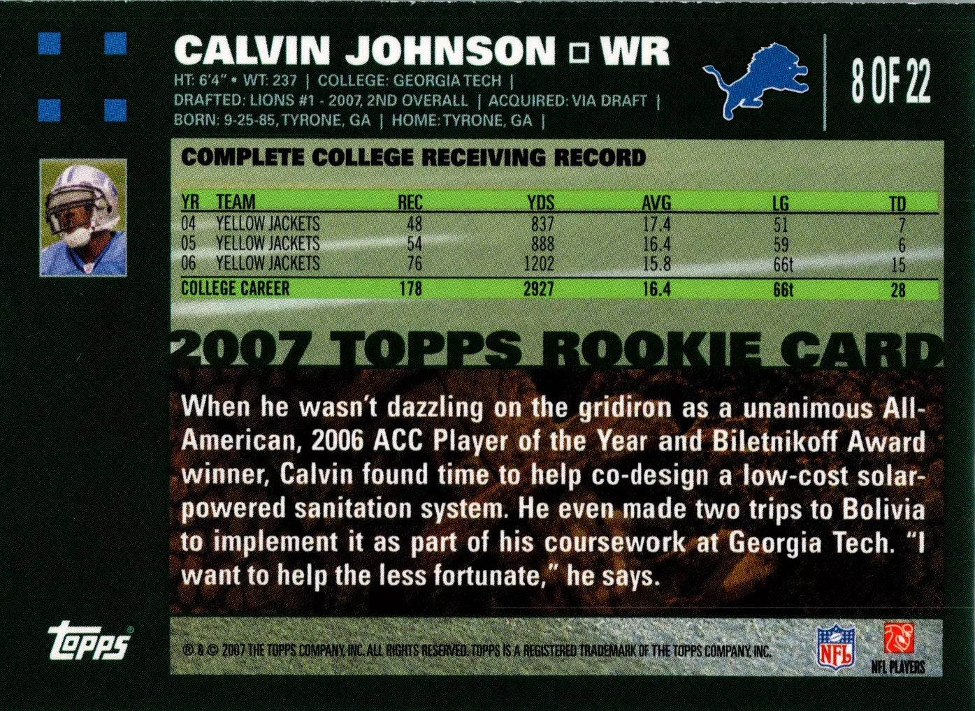 Calvin Johnson 2007 Topps Turn Back the Clock Series Mint ROOKIE Card #8 of 22